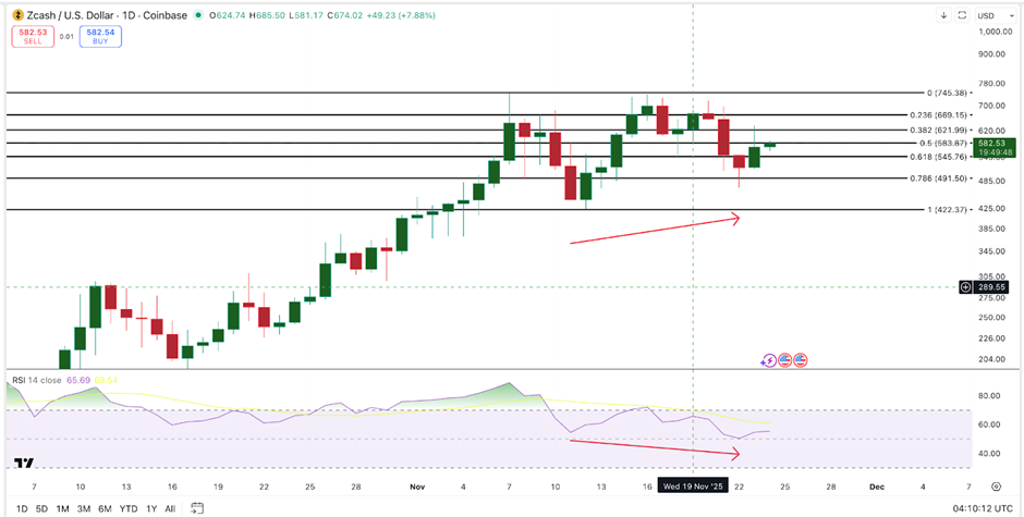 关键价位是 745 美元。如果 Zcash 突破 745 美元,则有望冲击更高的目标价位,例如 900 美元甚至 1000 美元。但如果该山寨币跌破 422 美元,走势将再次走弱。