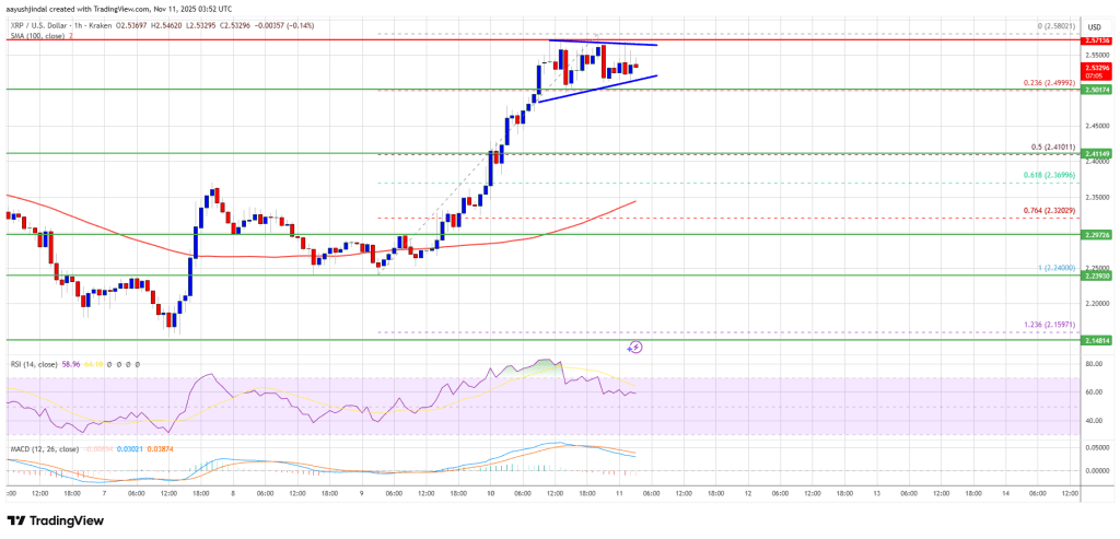XRP价格在2.420美元上方开始稳步上涨。目前价格正在盘整,可能会进一步上涨至2.580美元上方。