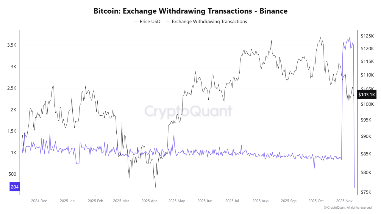 根据数据XWIN 研究日本据 CryptoQuant 报道,11 月初,币安记录到比特币提现交易量大幅飙升,这是 2025 年以来最大的一次。