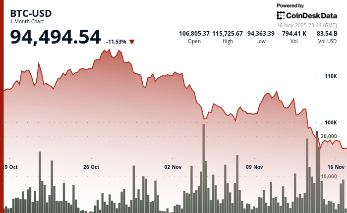 截至UTC时间晚上11点,比特币交易价格约为94293美元,过去24小时内下跌了1.2%。