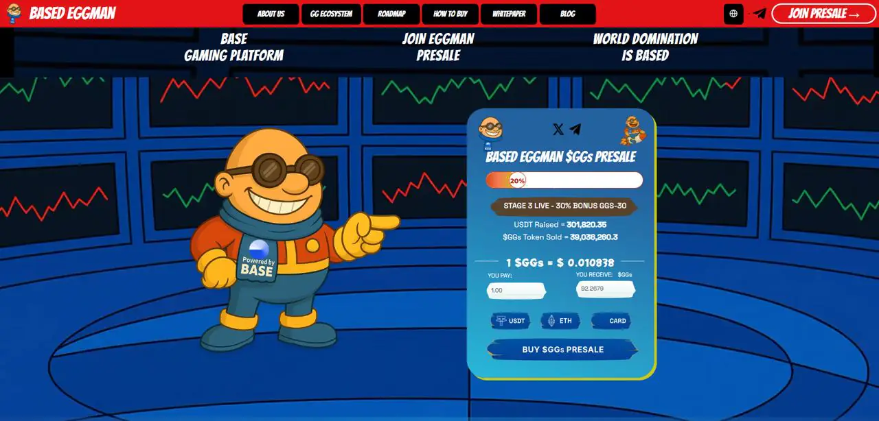 区块链与早期的PEPE类似,Based Eggman为投资者提供了一个市值极低的入场点,但它更进一步,融入了通缩机制、质押机会(Eggscalibur)以及寓玩于乐的游戏路线图——这些功能旨在促进长期持有者的参与和社区发展。由于PEPE市值较大,其上涨潜力逐渐减弱,精明的投资者甚至PEPE的前持有者都纷纷涌向Based Eggman预售,寻求下一个100倍增长的机会。凭借强大的社交势头、透明的开发流程和稳健的生态系统,Based Eggman脱颖而出,成为最值得买入的山寨币之一,有望在下一波加密货币市场狂热中实现突破性增长。