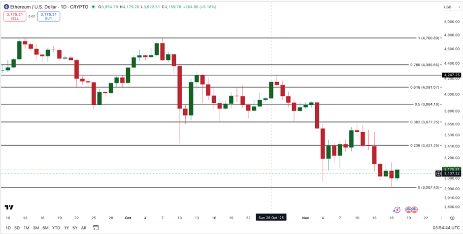 为了验证这一点,我们首先来看一下基本结构。以太坊价格已在 3100 美元的支撑位守住了好几天。