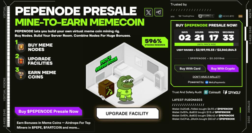 PepeNode 正在将网络迷因币的世界转变为一个真正的边玩边赚的挖矿生态系统。玩家无需购买昂贵的硬件或处理实际的挖矿设备,而是搭建虚拟矿机,升级节点,并通过游戏直接赚取 PEPENODE 代币。随着等级提升,玩家还能获得热门网络迷因币的奖励,从而获得更多收益。