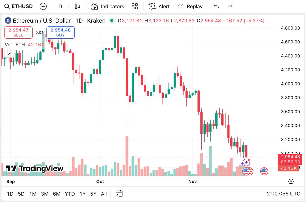 以太坊交易价格略低于 3000 美元,日内下跌 6.76%,市值 3545 亿美元,成交量 323 亿美元,跌幅达 36.91%。ETH 仍然是……的核心组成部分。Web3