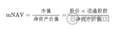 mNAV 代表了市场愿意为每一美元的净资产价值支付多少价格: