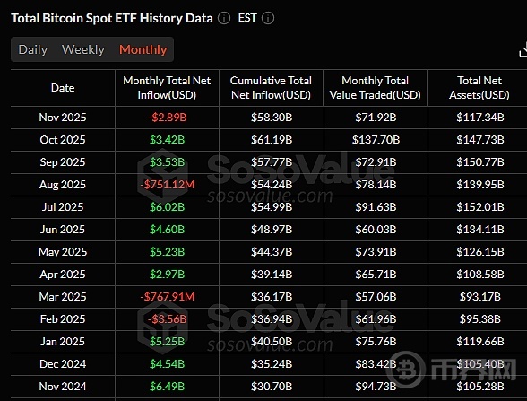 现在11月,ETF现货流出还不到2月份的量,但是币价已经从月初的11万下跌了20%到8万7。